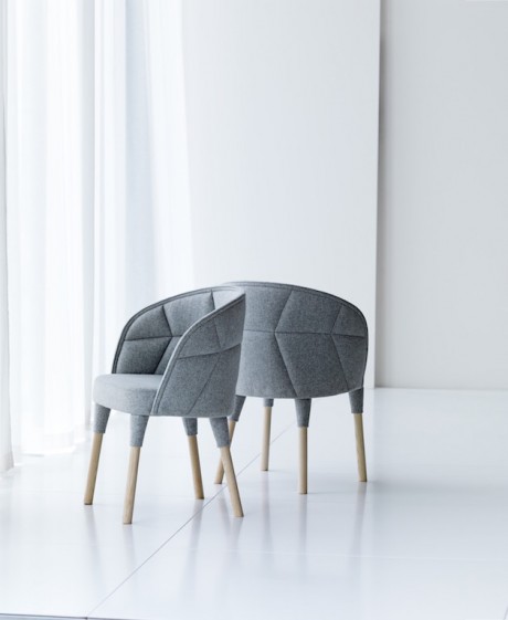 La prima è una poltrona che ti avvolge delicatamente. Il suo taglio, decisamente femminile, è accentuato dalla parte morbido tessuto trattato quasi come un abito alla moda. Emily si caratterizza per un linguaggio organico, senza spigoli, e per la sofisticata gamba “vestita”. Può essere rivestita in tessuto o pelle, con le gambe in legno o con una struttura metallica bianca, nera, oppure cromata.