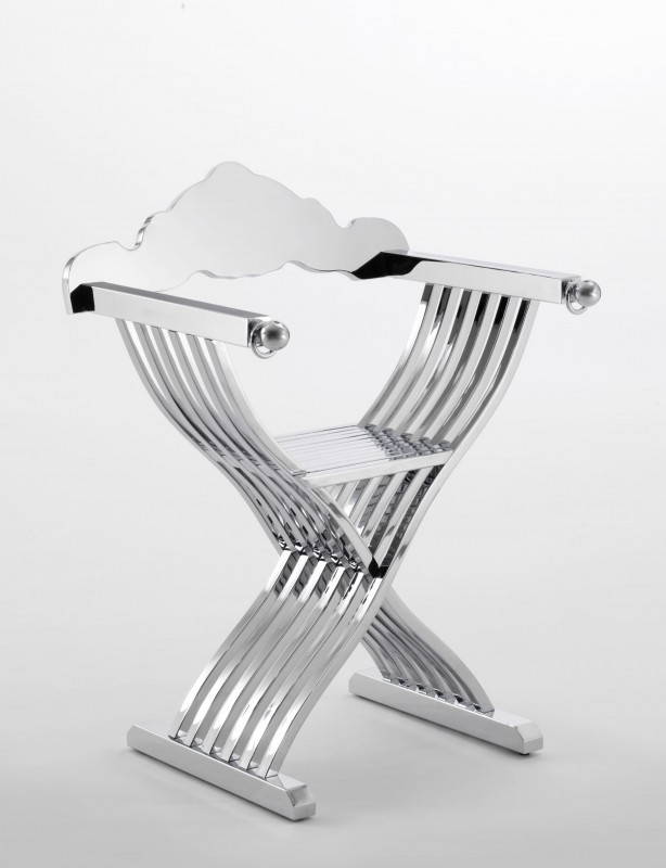 Sempre sul tema delle reinterpretazioni giocano la sedia, il tavolo e il coffe table “Girolamo”, ispirati anche nel nome allo storico modello della sedia Savonarola, realizzati interamente in ferro lavorato artigianalmente e lucidato a mano. I pezzi sono in tiratura limitata modellati singolarmente ed assemblati tramite viti in un gioco di incroci di linee curve ed asimmetrie elegantemente distribuite.
