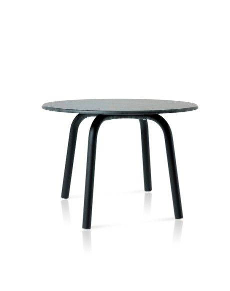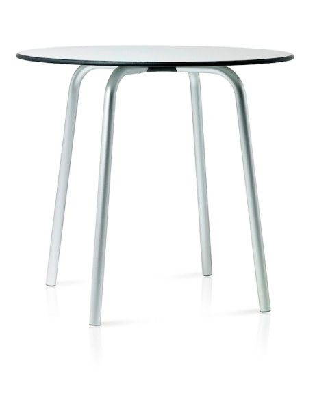 Anche le basi dei tavoli sono in alluminio riciclato con due finiture sabbiate (alluminio chiaro anodizzato o nero verniciato a polvere) e in due diverse altezze.