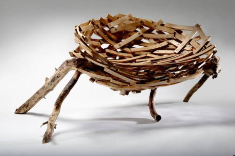 Il nido degli uccello è uno splendido esempio di architettura. Come designer che lavora molto con i materiale naturali, sono sempre stato affascinato da queste strutture che si trovano in natura. Eyrie Bench è per me un inno a questo tipo di costruzioni. Nasce così. Dalla curiosità del designer Floris Wubben, la panca Eyrie Bench realizzata per aMAZElab che è stata esposta durante la mostra “Green Island – Dutch design for a new city”. Per realizzare la seduta è stato utilizzato legno di frassino curvato a vapore e tutti i pezzi sono stati legati insieme da un chiodo in legno massello e colla da legno. Il telaio è formato da veri rami. www.floriswubben.nl