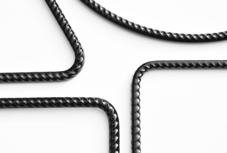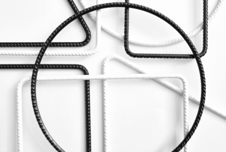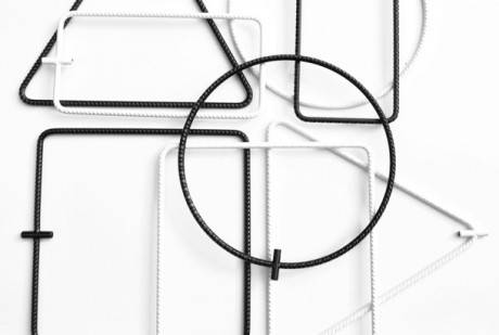 I telai sono realizzati in “acciaio rebar”, il tondino che si usa nelle armature di cemento, per intenderci, poi finiti in vernice opaca bianca e nera e infine sospese con un cavo in tessuto colorato.