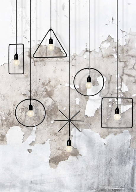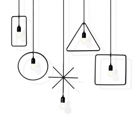 Una collezione di lampade minimali, ispirate alle forme geometriche elementari: cerchio, triangolo, quadrato, rettangolo oltre a Star, una variazione a stella.