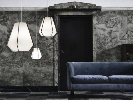 Prendendo ispirazione dalle opere dello scultore Isamu Noguchi , la designer Monica Förster ha creato Lullaby, una serie di lampade a sospensione con materiali sostenibili prodotte dalla danese Lightyears.
