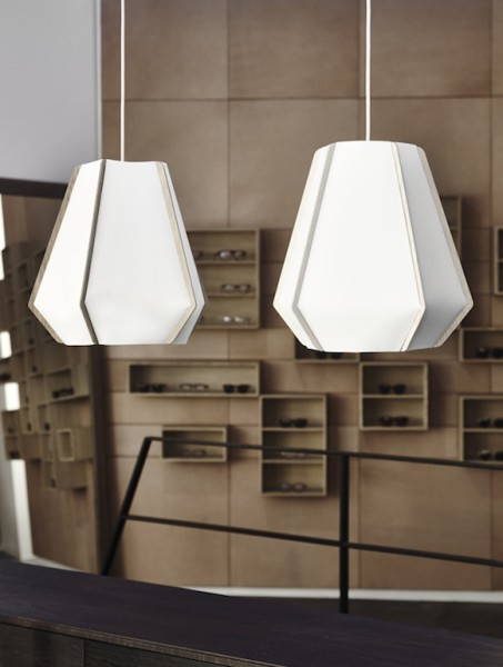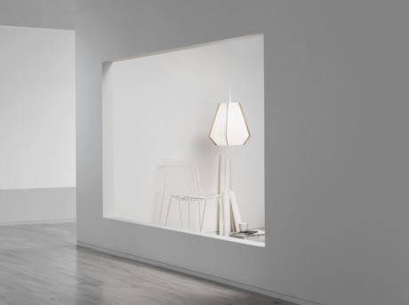 Ma torniamo alla collezione Lullaby, una serie di oggetti luminosi opalescenti , che comunicano un senso di leggerezza e di grazia. Modellate in forme organiche che assumono un aspetto vagamente pentagonale, I fogli di stone paper sono sostenuti da una struttura in listelli in betulla naturale.