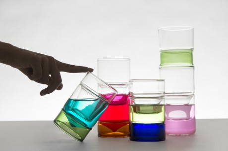 Il vetro colorato, il vetro trasparente; gioca sui contrasti il progetto della designer Cristina Celestino per Attico. Una collezione di brocche e bicchieri che parte dall’idea del vetro a strati. La loro particolarità risiede nel vetro nel quale la designer friulana ha creato intercapedini nel vetro borosilicato soffiato a lume e all’interno ha inserito un liquido colorato. Inclinando i bicchieri il fluido si muove invadendo la parte trasparente, come l’andirivieni delle maree. Da qui il nome “laguna”, un tocco di colore e movimento alla tavola, per scenografiche composizioni.