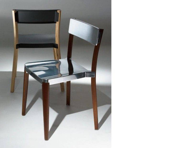 Le sedie Lancaster sono realizzate mescolando sedute e schienali in alluminio pressofuso con gambe in legno massello di frassino. Le parti in alluminio sono disponibili nelle finiture lucidate o trattate con “nano powder coat”, una nuova finitura che rompe la struttura molecolare della vernice in minuscole particelle, per farla aderire meglio al metallo.