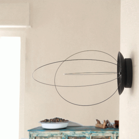 Si chiama Orbits Clock e probabilmente si ispira alle immagini della fantascianza. Si tratta di un insolito orologio a parete, disegnato da studio Ve (che nella propria produzione ha diversi orologi) nel quale le lancette si trasformano in 3 circoli orbitanti che ruotano incessantemente, con il loro lento movimento, a segnate il tempo che scorre.