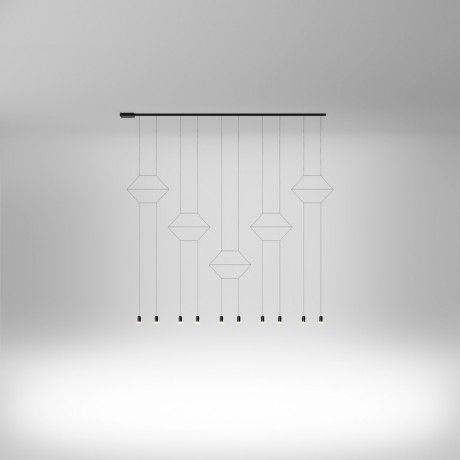 Un intreccio di sottili cavi metallici con terminali Led da 3W che creano installazioni luminose geometriche assolutamente uniche o, come le definisce lo stesso designer, un misto di “presenza e assenza, trasparenza e luminosità, luce e fluidità”.