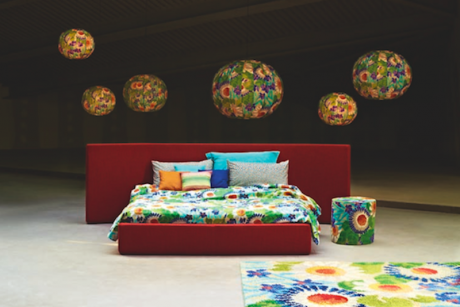 Si chiama Margherite la nuova collezione 2013 di arredi da interno e per l’outdoor proposta da Missoni Home. Un vero inno a questo fiore semplice eppure così iconico, che viene ripreso in tutti i colori in un omaggio alla pittura impressionista: trionfano campi di margherite al sole, mazzi e distese di margherite stampate su tele di lino o su un leggero raso di cotone oppure ricamate. Margherite mescolate agli iris e ancora margherite che ammiccano ai girasoli di Van Gogh o che riprendono i tratti e i colori del pointillisme. Tanti fiori colorati che rallegrano letti, poltrone, tende e pouf, sospesi nell’aria sulle lampade “Bubble” o distese a terra, come in un’aiuola domestica, nei tappeti della collezione.