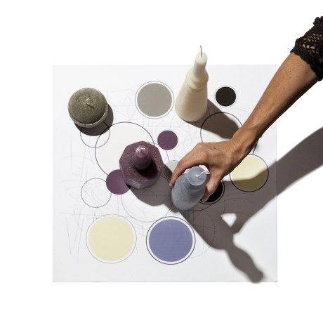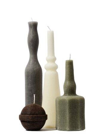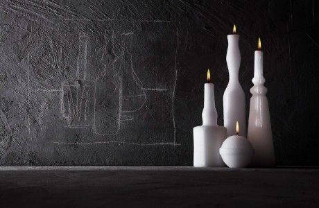 Le Morandine sono proposte in gruppi di quattro, nei toni opachi e nelle tinte delle più tipiche sfumature morandiane. Realizzate artigianalmente mediante il metodo di colatura, presentano una graffiatura “a tela” eseguita manualmente, una per una, che le rende esclusive. Le Morandine vengono arricchite da un pattern che riproduce, in modo stilizzato, i cerchi che il Maestro tracciava sul tavolo da lavoro per determinare la giusta collocazione dei suoi oggetti. Così sarà possibile interagire con le candele, disponendole su un piano con la stessa libertà con cui Morandi spostava i suoi oggetti prima di immortalarli sulla tela.