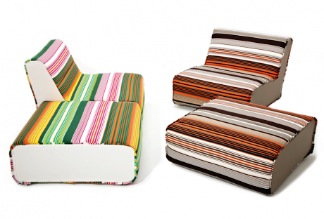 Sobria oppure coloratissima, in tessuti a righe o monocromatici, sfoderabili e lavabili; la forma è sinuosa, addirittura promette di essere antiscivolo, adatta sia per gli interni che per l’outdoor.