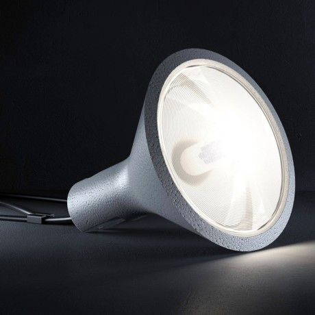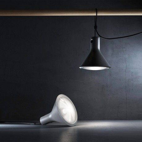 La struttura, robusta eppure leggerissima, è realizzata in schiuma di polipropilene mentre il diffusore è in policarbonato trasparente. È dotata di un cavo di 5 metri che le permette di essere spostata e posizionata a seconda delle necessità,