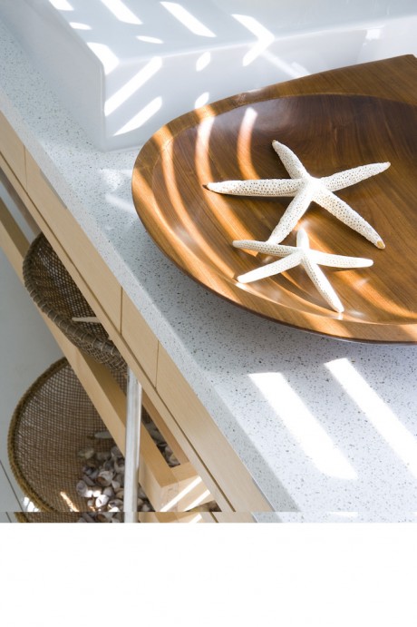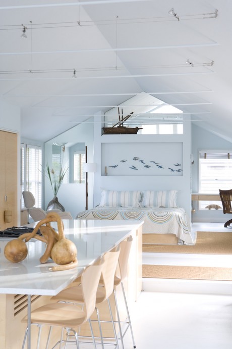 Il sogno diventa possibile in questo piccolo boutique hotel di Gerard Drive, una zona più appartata sull’Oceano Atlantico dove alcune molti si sono trasferiti a fuggire dalla folla che in estate, durante l’alta stagione, si riversa a Hampton. Il progetto, realizzato da Luis Pons design lab, ha voluto unire la più squisita accoglienza e il comfort di una suite d’albergo con il massimo della privacy, dovuti alla posizione, al silenzio e alla pace di questa zona isolata di fronte all’oceano. All’interno, un unico open space, l’isola cucina funziona come un tavolo e divide lo spazio in due: su un lato la zona soggiorno e sull’altro la camera da letto a vista. Unici ambienti separati, il bagno con spogliatoio, doccia e un piccolo office.