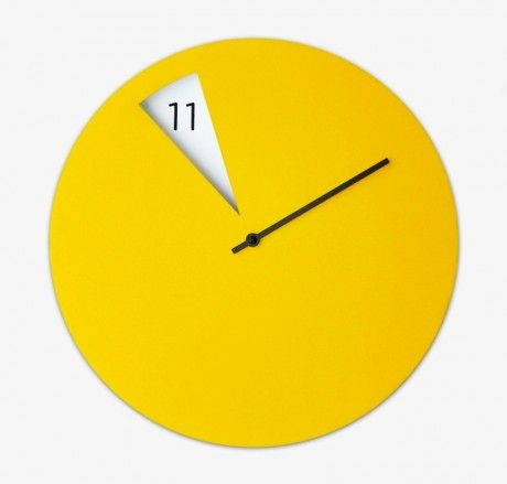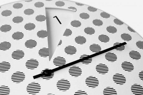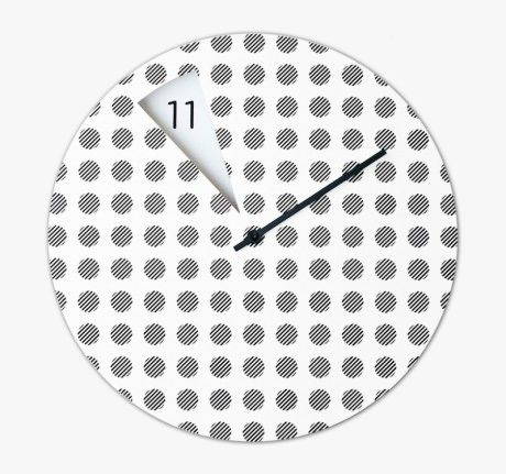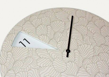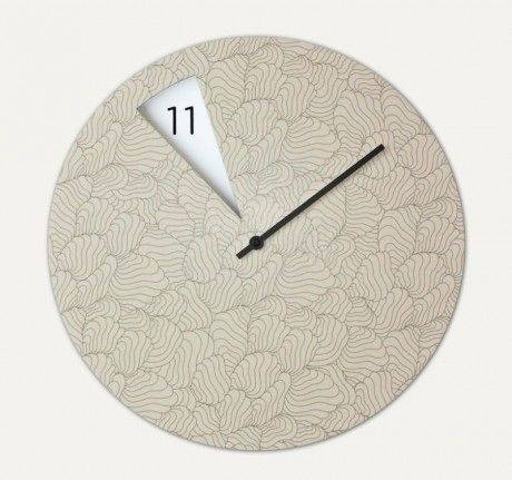 Realizzato in materiale plastico, l’orologio è disponibile in diversi colori (nero, giallo, verde, lilla) e decorazioni (pois e conchiglie). Diametro, 30 cm. L’orologio è acquistabile direttamente dal sito delle designer.