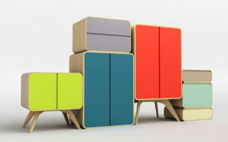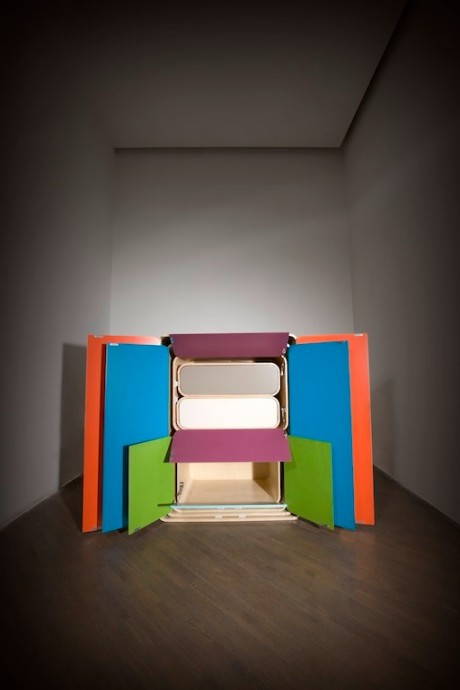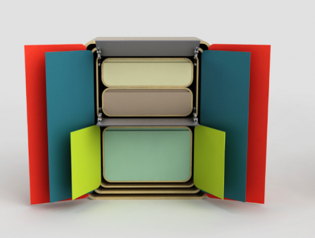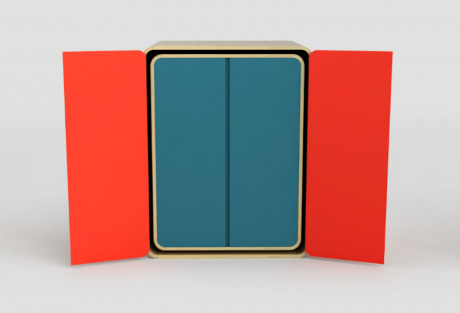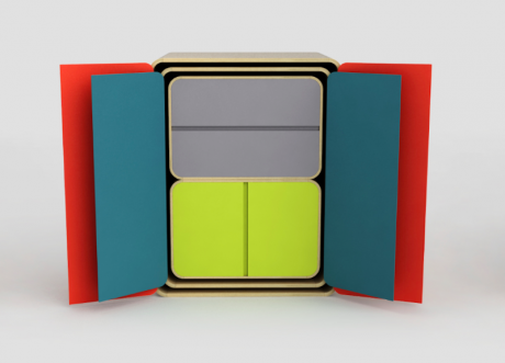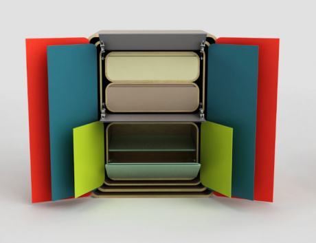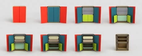 Come nel gioco delle bambole russe, armadi, cassettiere e madie di dimensioni sempre più piccole possono essere sfilati dall’elemento più grande che li contiene tutti e disposti a piacimento nello spazio. Una volta chiuso, partizioni e gambe scompaiono sul fondo del mobile e si vedrà un mobile solamente.