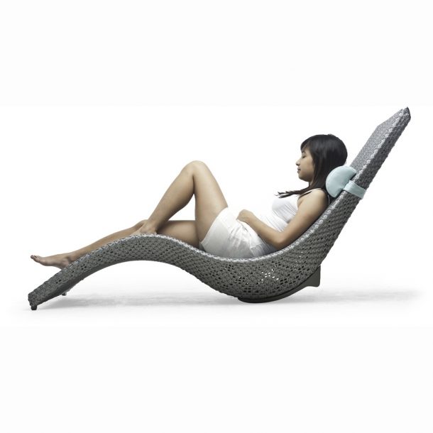Mermaid compresa. Una chaise longue dallo schienale regolabile e reclinabile, un vero e proprio salotto all’aperto che sa offrire lunghissime ore di relax.