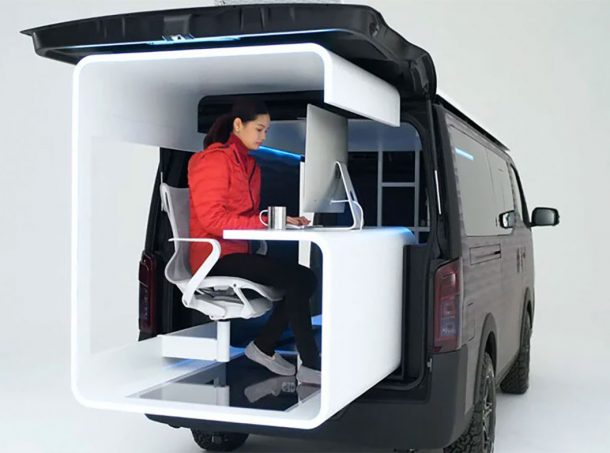 IN passato, Nissan aveva già customizzato un Van per lo Smart Working e lo aveva progettato in collaborazione con lo studio di design britannico Hardie.