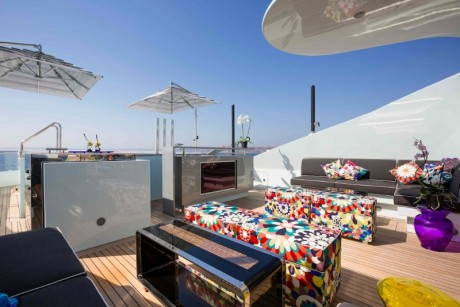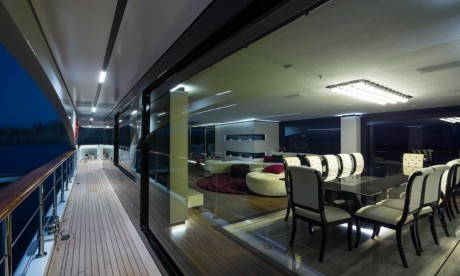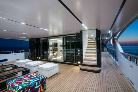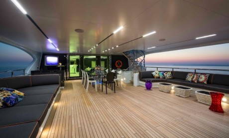 Si tratta dello yacht Benetti Ocean Paradise – FB263, un’innovativa imbarcazione da 55 metri in acciaio e alluminio. Sono tanti gli elementi che rendono questo yacht un custom d’avanguardia, dalle soluzioni d’arredo al grande lavoro d’illuminotecnica passando per soluzioni architettoniche inedite e il largo uso di materiali trasparenti quali il plexiglass o il