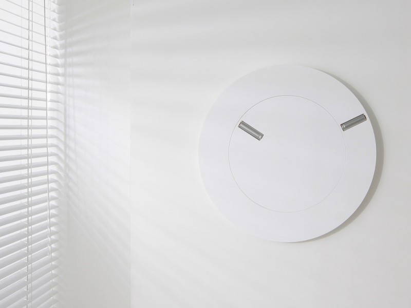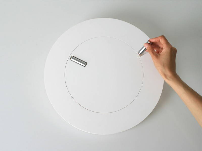 Il suo Back & Front è un semplice orologio alimentato con le più comuni batterie, costruito con due dischi, uno esterno e uno interno. Entrambi hanno una pila che ne permette il movimento e che soprattutto funge da lancetta, nel disco interno per le ore e in quello esterno per i minuti. Un progetto semplice e al tempo stesso di grande effetto: un trionfo del gusto minimalista in total withe, senza neanche la più piccola traccia di un numero o di un puntino ( in fondo non necessari) che aiutino nella lettura dell’ora. A rendere il tutto interessante sono proprio queste batterie, una trovata che richiama una famosa frase di Antoine de Saint-Exupèry: “la perfezione si ottiene non quando non c’è nient’altro da aggiungere, bensì quando non c’è più niente da togliere”.