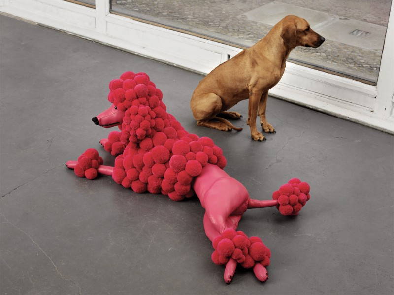 L’ultima creazione di Myraè uno stupendo “pink Bommel-Poodle”, un barboncino gigante rosa, a grandezza naturale.