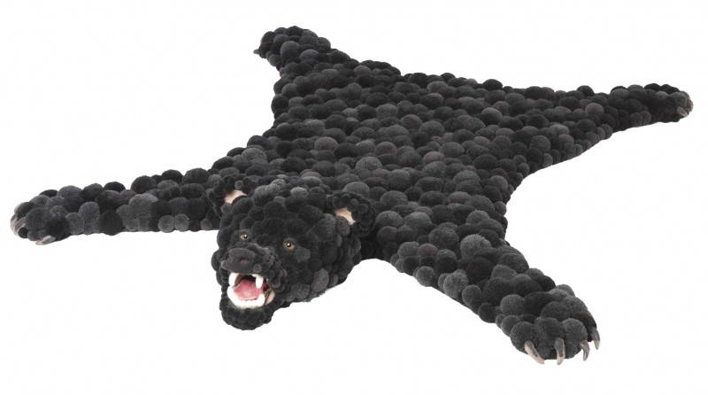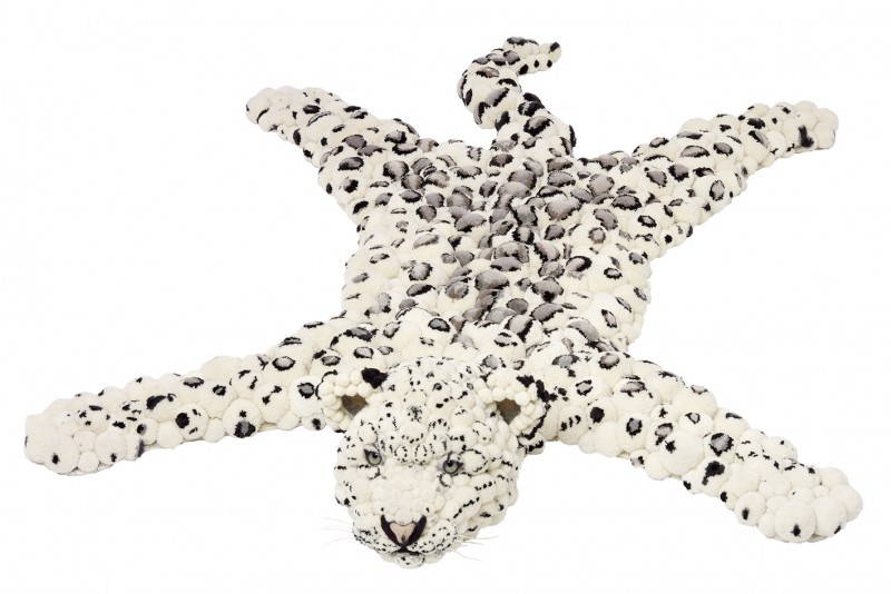 La collezione di MYK comprende tappeti, cuscini e pouf ma anche finte pellicce di animali a dimensione reale (come un orso Grizzly, una pantera nera e un leopardo delle nevi).