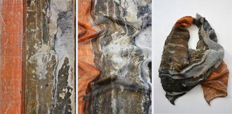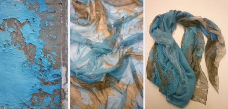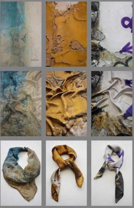 Riccardo Coppetta (in arte e nella vita Ri.Co) ne è l’inventore e ha tradotto (per ora) questa ricerca visiva e fotografica sui muri in: foulard, scialli e sciarpe in seta e cachemire.
