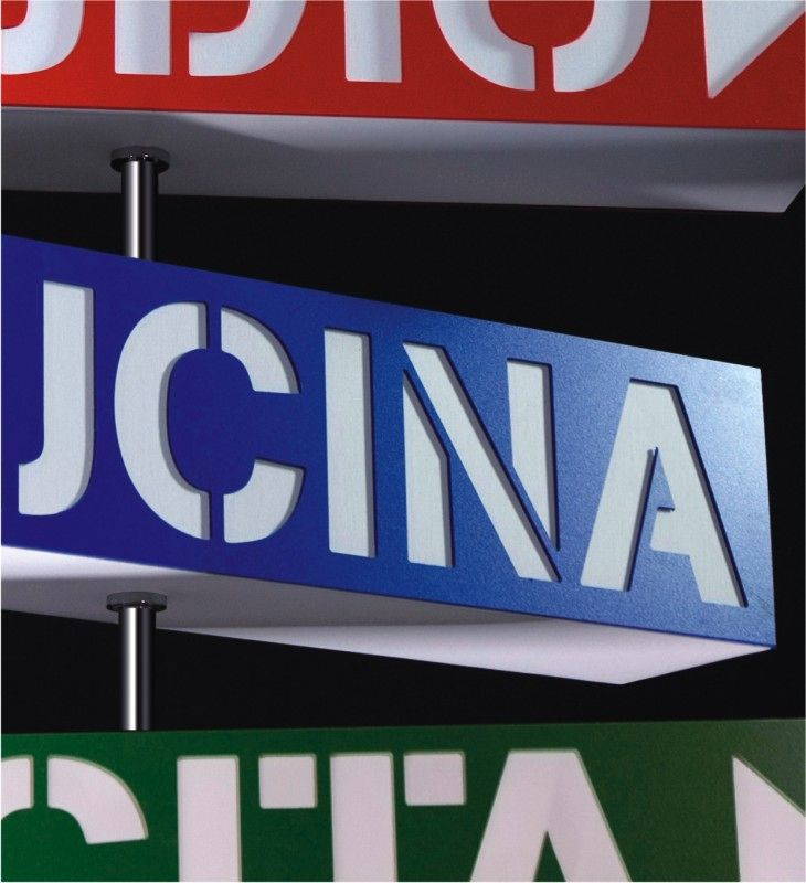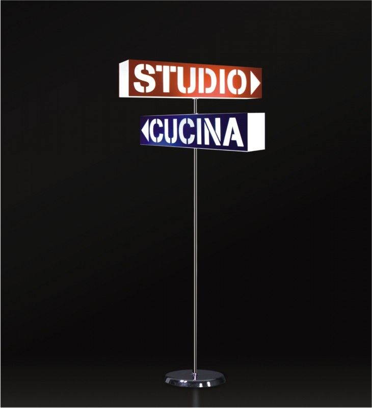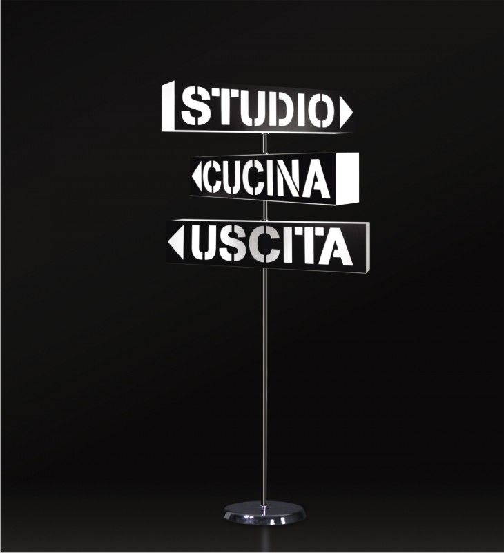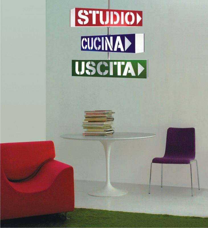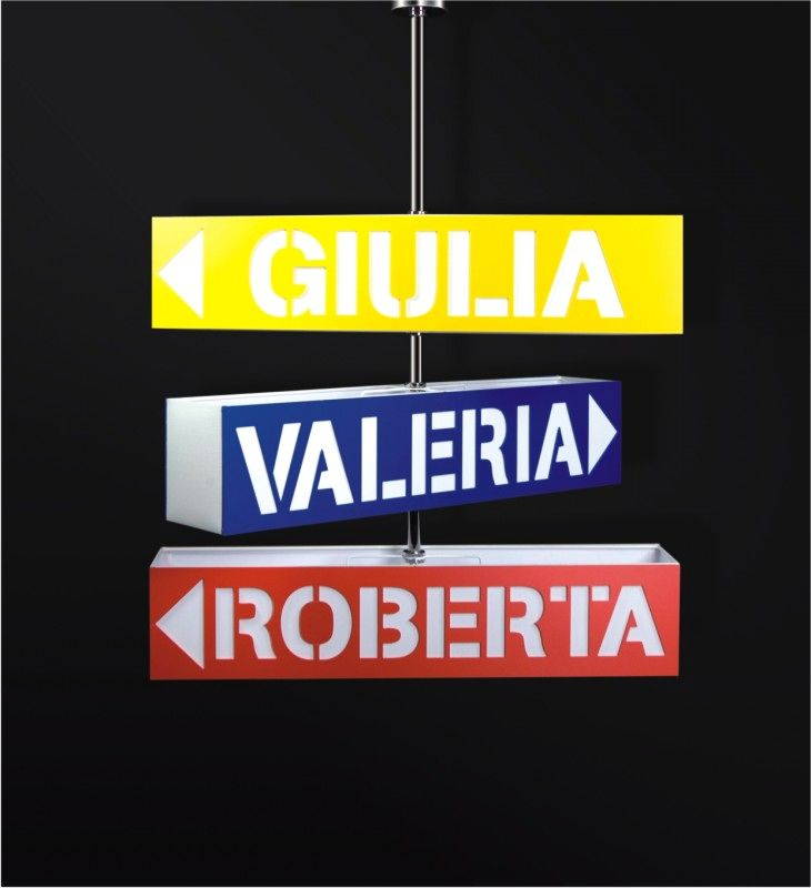 Si tratta ancora di un sistema segnaletico, stavolta sicuramente più colorato, e in ogni caso personalizzabile, con i “cartelli” posizionabili a piacere e disponibili anche con nomi propri. Questa volta però è utilizzato come elemento illuminante. “Sing” di Salvatore Aiello infatti è una lampada, disponibile nella versione a sospensione o da terra, con telaio in acciaio cromato e paralumi in pvc. Un progetto che nel 2008 è stato prototipato e depositato all’Ufficio Italiano Brevetti e Marchi.