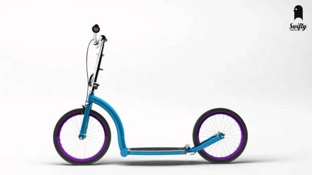 Jason e Camilla, grazie alla collaborazione del Jamily Design Studio, hanno trasformato un tradizionale gioco per bambini in un mezzo di trasporto per adulti. Swifty Scooter è un “veicolo” agevole per muoversi in qualsiasi ambiente urbano, reso sicuro dalle sue ruote da 16 pollici e da uno sterzo che permette di rispondere bene a tutti i comandi di chi sta alla guida. Esiste in 2 modelli, uno tradizionale e uno pieghevole, il modello Swifty One.