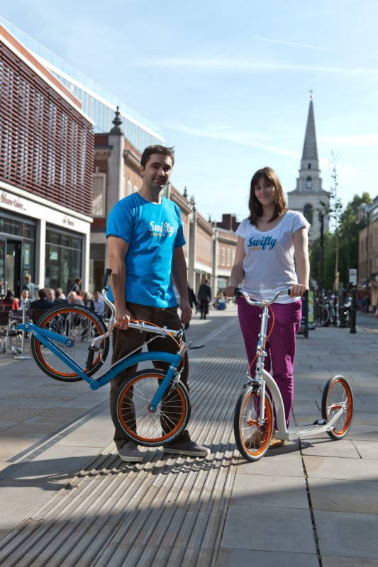 Quando è chiuso lo Swifty Scooter di Jason e Camilla Iftkhar potrebbe sembrare una bicicletta incidentata, ma niente paura: si tratta semplicemente di un monopattino pieghevole da città.