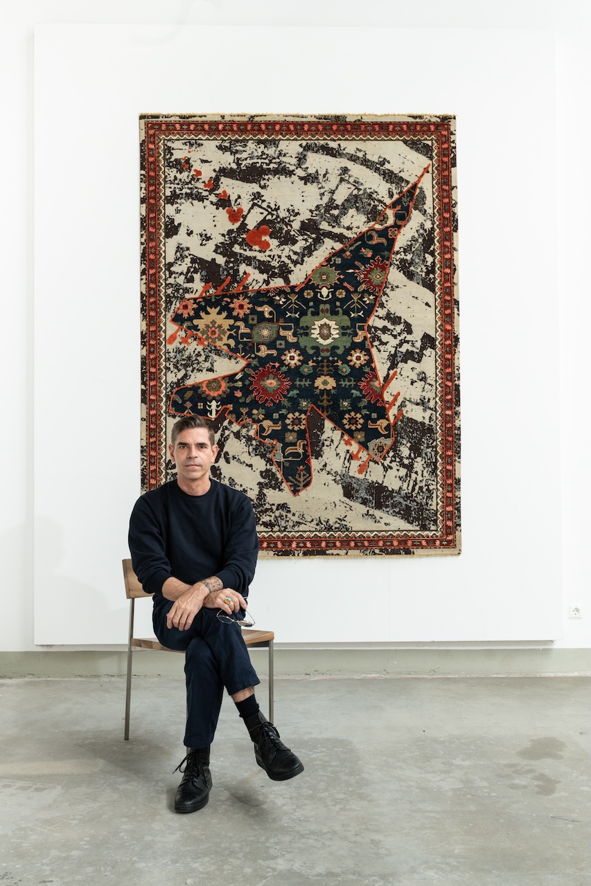 Jahn Kath compie un’operazione tanto semplice quanto destabilizzante: con la collezione Rug Bombs traduce la violenza del presente in un linguaggio tradizionalmente associato al comfort e al lusso. Il tappeto – oggetto che per definizione accoglie, riscalda, protegge – diventa campo di collisione tra bellezza e tragedia, tra perizia artigianale e urgenza politica.