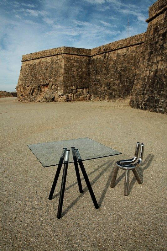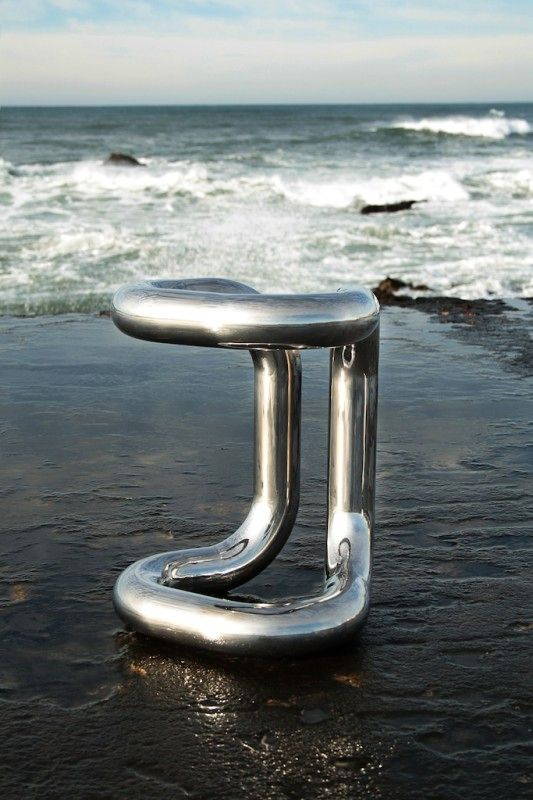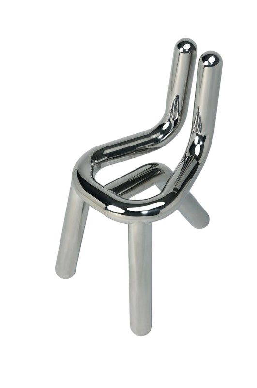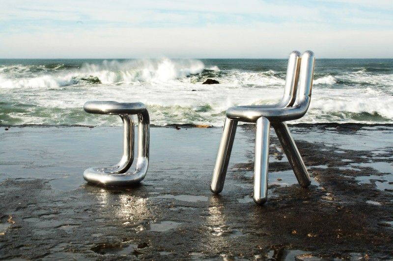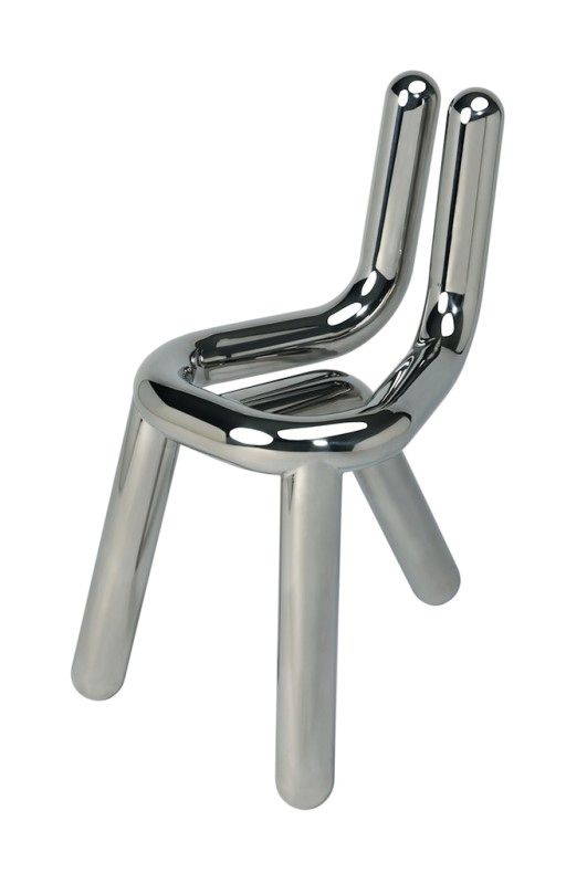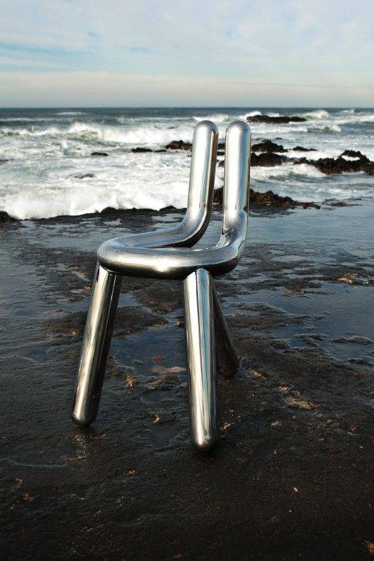 Aline Chair è una provocazione disegnata dal designer franco portoghese Toni Grillo per Riluc. Una seduta “futurista” realizzata con tubi in acciaio inox di grande spessore curvati e lavorati a specchio.