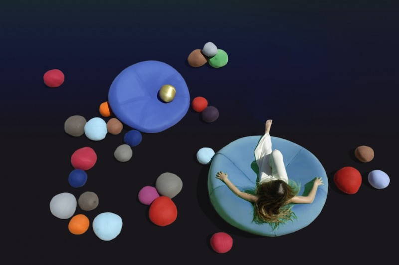 Nenuphare è infatti una collezione di 5 sfere e semisfere che si sovrappongono, un insieme mobile che crea un nuovo “ritmo fluido”, come lo definisce la stessa designer, un oggetto pratico e funzionale, dove potersi sedere comodamente, come nel mezzo di un quadro in movimento. La gamma di colori, di conseguenza, è vasta come una tavolozza, per dipingere il proprio universo personale.