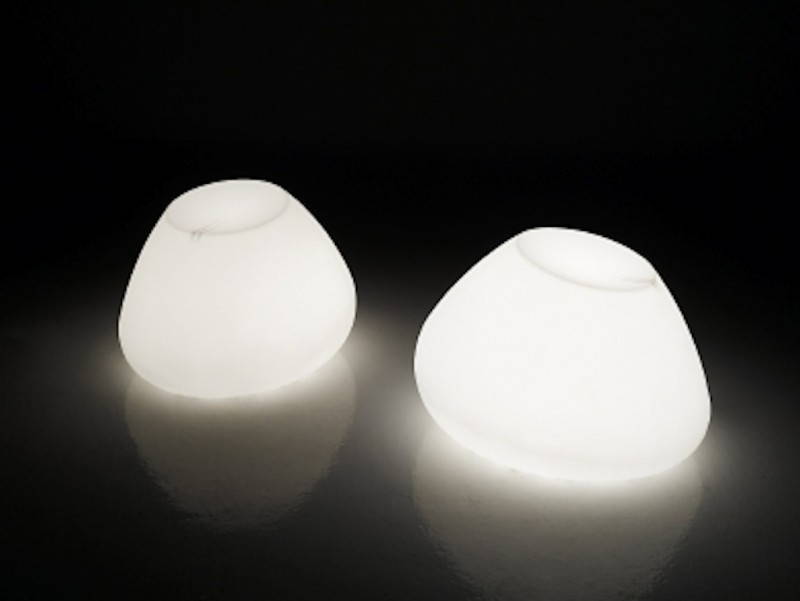 Disegnata da Valerio Bottini con Enzo Panzeri e realizzata in poliuretano, questa particolare lampada è dotata all’interno di fonte a LED con luce bianca oppure RGB ed ha il controllo remoto dei colori tramite un telecomando. Basta un semplice gesto per scegliere il colore preferito o l’atmosfera più indicata ad illuminare la serata. Per la versione outdoor, è disponibile un picchetto che la fissa al terreno.