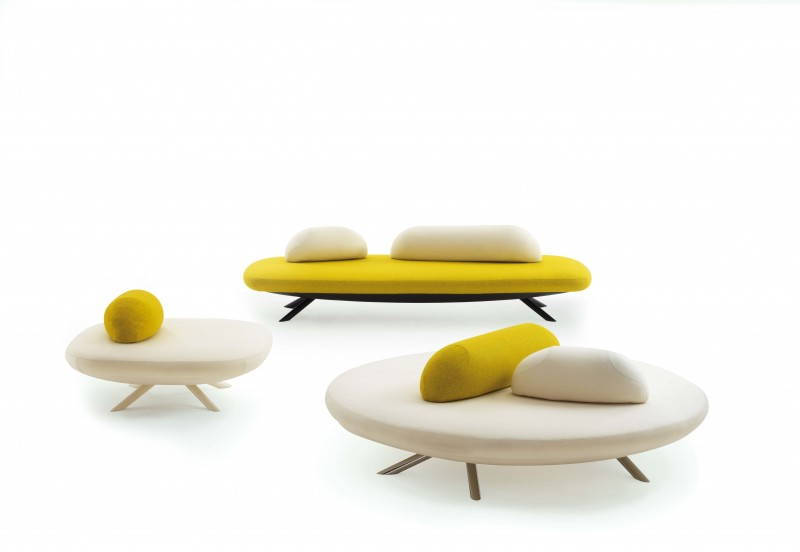 Flores vuole essere una calamita visiva, sicuramente adatta agli spazi pubblici, le sale di attesa o i luoghi di relazione. Si tratta di panche circolari, rettangolari o quadrate, dai colori tenui, dove è possibile giocare con i cuscini zavorrati per realizzare configurazioni di seduta diverse.