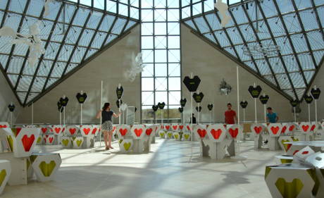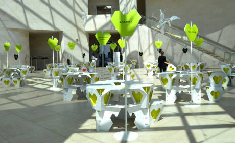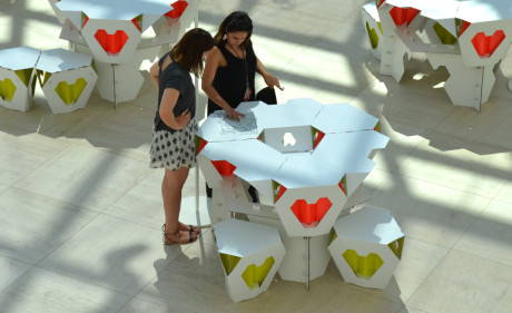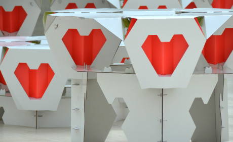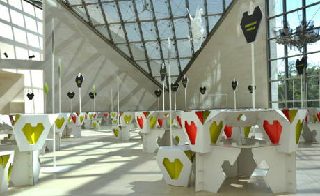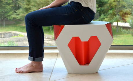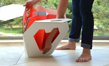 La designer olandese Noa Haim,che ha fondato il collettivo “Paper Aesthetics” ha realizzato un nuovo negozio Pop Up, realizzato in occasione del Marché des Créateurs presso il museo Mudam, in Lussemburgo. La particolarità sta nel fatto che tutto lo spazio è stato arredato con i suoi celeberrimi sgabelli pieghevoli con il profilo a cuore, realizzati al 100% in cartone. Gli sgabelli, oltre a poter essere utilizzati singolarmente come sedute, possono essere assemblati, come i mattoncini di un gioco di costruzioni, in diverse maniere fino a costruire tavoli, librerie, espositori in un’infinità di composizioni possibili. Per l’occasione, sono stati prodotti 200 sgabelli di cartone, con i quali sono state configurate tre tipologie di tavoli: uno basso, uno alto e uno dalla forma allungata. Per differenziare due diversi ambienti commerciali che convivevano in un unico spazio, la designer ha creato composizioni utilizzando due due colori. Tutte le composizioni possono essere smontate e facilmente ri-assemblate con forme diverse. www.collectivepaperaesthetics.com
