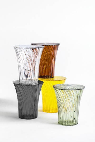 Sparkle invece è una linea di sgabelli e tavolini creati dal giapponese Tokujiin Yoshiokala cui particolare plissettatura, sia all’interno sia all’esterno del materiale plastico, crea un risultato finale molto suggestivo.