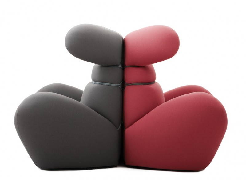 Boris e Aleksej dicono della loro Bunny: ”Abbiamo sempre pensato che la bergère fosse una tipologia di mobile caduta un po’ nell’oblio. La maggior parte delle persone la collegano al nonno che ci legge il giornale o alla nonna con i suoi ferri da calza. Per questo è stata una sfida reinterpretare la sedia in modo divertente, coi ricordi dei dolci animali di pezza che ci facevano compagnia nel sonno della nostra infanzia… ora però dedicata agli adulti!”