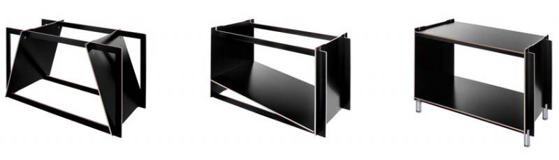 Kiru si basa su un sistema modulare di pannelli a incastro in 3 forme diverse, che può essere ampliato con vari accessori, quali cassetti e schienali. Questo permette di ottenere un modulo standard col quale è possibile poi realizzare composizioni di ogni genere. Un prodotto essenziale e minimalista per la semplicità della sua costruzione. Il progetto di Kiru è basato sull’idea di ridurre l’uso di materiale e di minimizzare la complessità di costruzione e di produzione. La costruzione della struttura leggera consente di costruire un sistema estremamente stabile. Gli elementi base, cornice, mensola e pannelli laterali, sono tagliati (senza sprechi) da pannelli in compensato di betulla di soli 6 mm di spessore e sono venduti in un box leggero e facilmente trasportabile. I piedini in alluminio regolabili in altezza garantiscono la massima stabilità alla struttura.