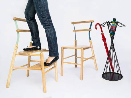 L’idea è quella di continuare con le abitudini quotidiane ma senza il rischio che queste abitudini comporta. Parliamo di salire su una sedia per prendere qualcosa che abbiamo riposto in alto, col rischio di cadere e farsi male. I designer Elena Albricci e Claudio Fiumicelli, fondatori di Studioventotto, hanno valutato l’offerta attuale di sedute-scaletta e hanno osservato che tutti i prodotti sul mercato sono accomunati dalla presenza di meccanismi (che ne alzano il costo) e da un’estetica fortemente influenzata dalla doppia funzione. Hanno dunque pensato a Suppergiù, un prodotto che potesse costare come una normale sedia in legno che con rapidità passasse da una funzione. Il risultato è una sedia apparentemente simile a tutte le altre ma con alcune differenze fondamentali che con poche semplici mosse la trasformano in una pratica e sicura scaletta. Suppergiù è realizzata in legno e metallo e attualmente è un prototipo realizzato da Artelegnolab. www.studioventotto.com www.artelegnolab.it