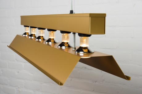 La distanza tra la base della lampada e il paralume, infatti, dipende dal tipo di lampadina che si sceglie, che diventa in questo modo una caratteristica importante dell’apparecchio di illuminazione. TL bulb è disponibile a 4 e 6 luci, e in alluminio anodizzato naturale o ottone dorato.