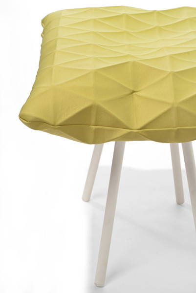 La poltrona è rivestita da uno speciale tessuto, realizzato in 3D in base a studi che rappresentano forme contemporanee create da curve geometriche. Il modulo è sviluppato con una speciale tecnica di piegatura in grado di creare un elemento strutturale 3D partendo da un elemento bidimensionale. Mikabarr e PRODUCKS avevano già collaborato a una serie di progetti multidisciplinari, creando un linguaggio che pone la stessa attenzione alla struttura del prodotto e alla sua superficie.