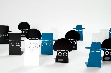 The Family è una collezione di reggilibri in acciaio tagliato al laser e verniciato che si caratterizza per sembianze di simpatici personaggi. C’è il signore elegante con tuba e monocolo, uno strano personaggio col cappello, forse un detective americano degli anni ’40, c’è l’afroamericano dai capelli a cespuglio e c’è infine una pigra civetta che ci guarda con i suoi occhioni cerchiati.