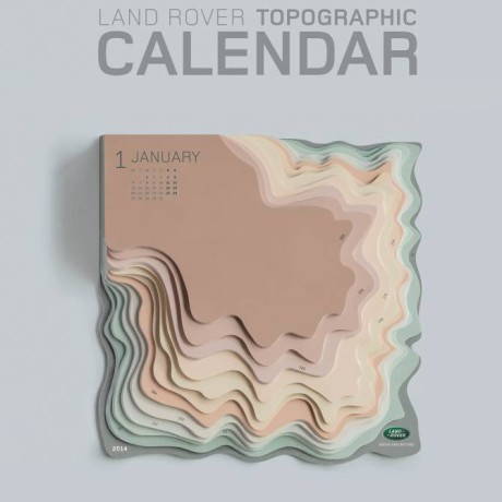 Scordatevi i soliti calendari a foglietti, con fogli rettangolari bianchi e monotoni. Da oggi, grazie al direttore creativo turco Zeyep Orbay, c’è il calendario giornaliero di Land Rover: una versione 3D delle mappe topografiche, con tanto di colori diversi per ogni livello. I giorni sono segnati sul lato di ogni pagina e i numeri sul fondo mostrano invece gli ultimi giorni dell’anno. Un calendario per i più avventurosi, a cui non basta il promemoria sullo smartphone. www.zeyneporbay.com