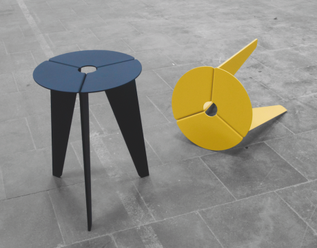 Nella collezione c’è Drilling, uno sgabello a tre piedi adatto sia all’uso in casa che all’aperto, ed è stato prodotto assemblando tre identiche parti di alluminio spesse 4mm, per cui è molto leggero e facile da spostare. Ogni pezzo è sabbiato, verniciate a polvere o anodizzato.