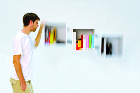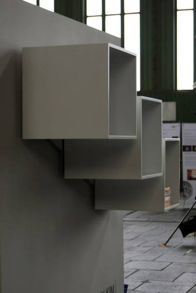 E infine Dreix, che probabilmente è l’oggetto più curioso: un set di tre scaffali di forma quadrata, che possono essere ruotati in senso circolare pur rimanendo e coi lati paralleli, e adattati così a qualsiasi parete, a seconda del gusto e del senso dello spazio personale.