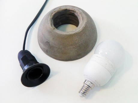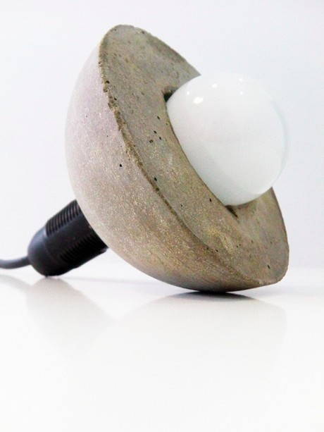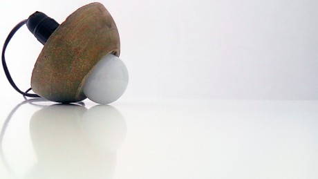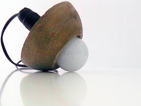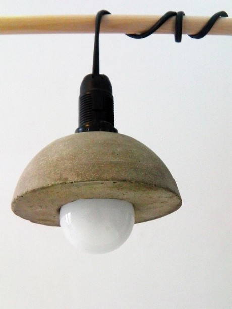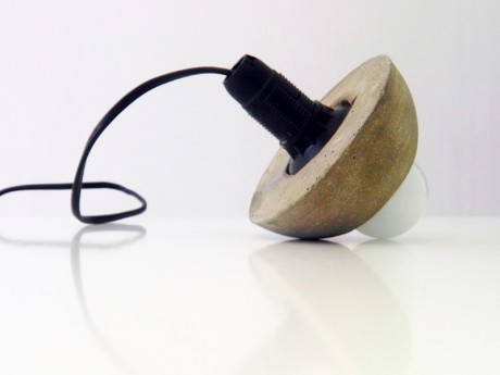 Un “faretto da tavolo”, come lo chiamano i giovani designer, formato da una base in cemento a forma di mezza sfera. Il corpo-diffusore può essere montato in entrambi i versi sì da creare due alternative: può essere appoggiato sul tavolo, così da vederla oscillare sul lato curvo, oppure può essere utilizzata come sospensione tradizionale. Il cemento può essere naturale oppure colorato.