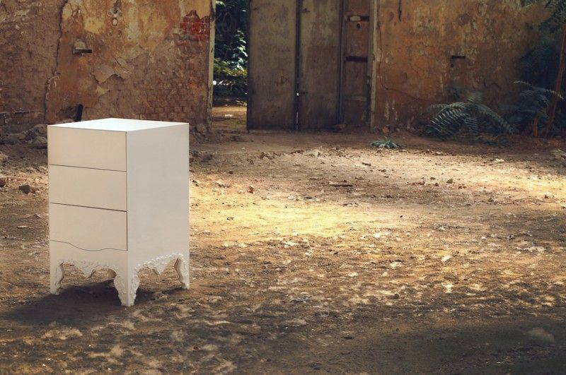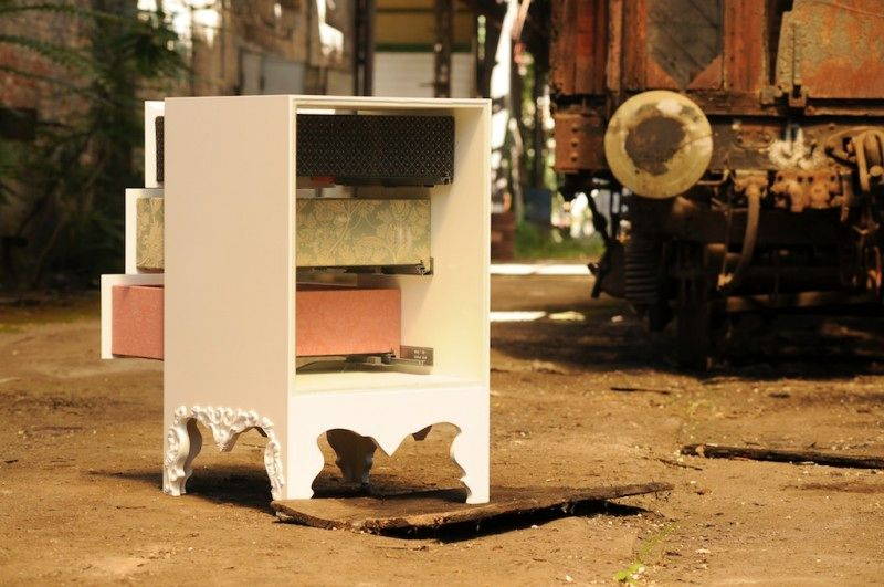 I due designer ungheresi hanno stravolto lo stile piatto di Couvet, una cassettiera davvero senza pretese. È bastato decorarne il bordo inferiore con stucchi e incisioni in stile rococò, e poi rivestire la parte laterale dei cassetti con tappezzeria colorata e a fantasia. Certo, questo è un dettaglio un po’ a sorpresa, apprezzabile solo quando si estraggono i cassetti, ma in ogni caso utile per dare un tocco di originalità all’oggetto.