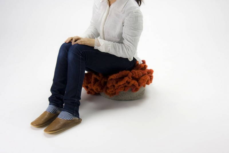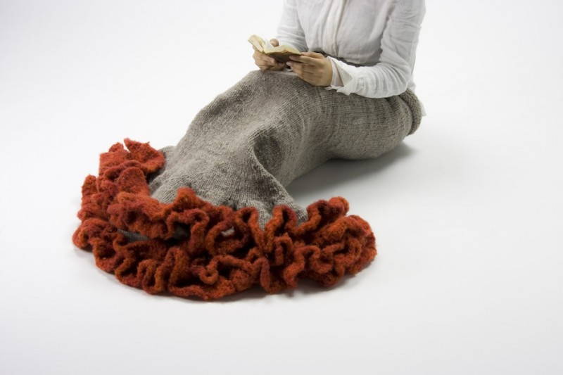 Clytie è una coperta, ma è anche un pouf. Serve per scaldarsi le gambe ma anche per sedersi. Clytie si trasforma, a seconda delle necessità.