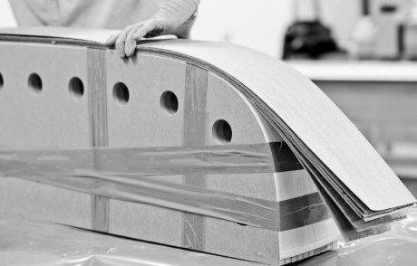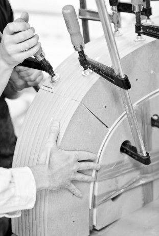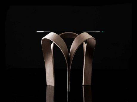 O infine il tavolino Arch, realizzato incollando tra loro tre archi in legno lamellare di rovere, stampato e poi ritorto di 120 gradi.