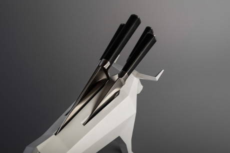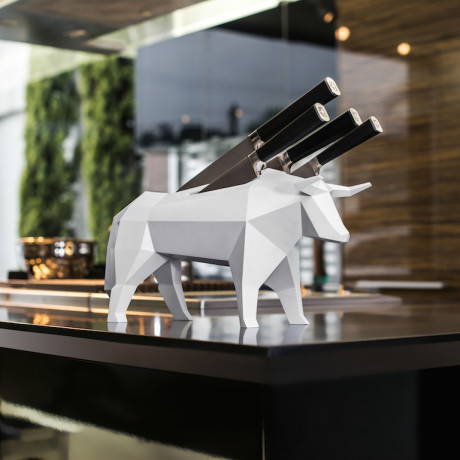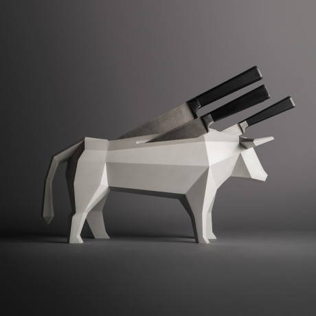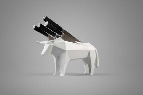 Un oggetto da cucina che si ispira un rituale tradizionale della cultura ispanica, quello della corrida, a denunciarne la violenza con sottile ironia. Si tratta di “Only Right Here” del giovane messicano Alan Saga, un portacoltelli da cucina a forma di toro dalle forme geometriche scolpite in ben 162 sfaccettature. Realizzato con la tecnica dello stampaggio ad iniezione in ABS con finitura bianco opaco, il toro ha un’altezza di 198 millimetri per 388 millimetri di lunghezza. Secondo una recente ricerca, in Messico il 70% della popolazione è per l’abolizione della corrida e il designer auspica una nuova era in cui la violenza contro gli animali sia solo retaggio del passato . Only Right Here ha vinto il premio Platinum del concorso internazionale A’ Design Award 2013 – 2014 nella sezione Bakeware, Tableware, Drinkware and Cookware. Foto: Nydia Lilian